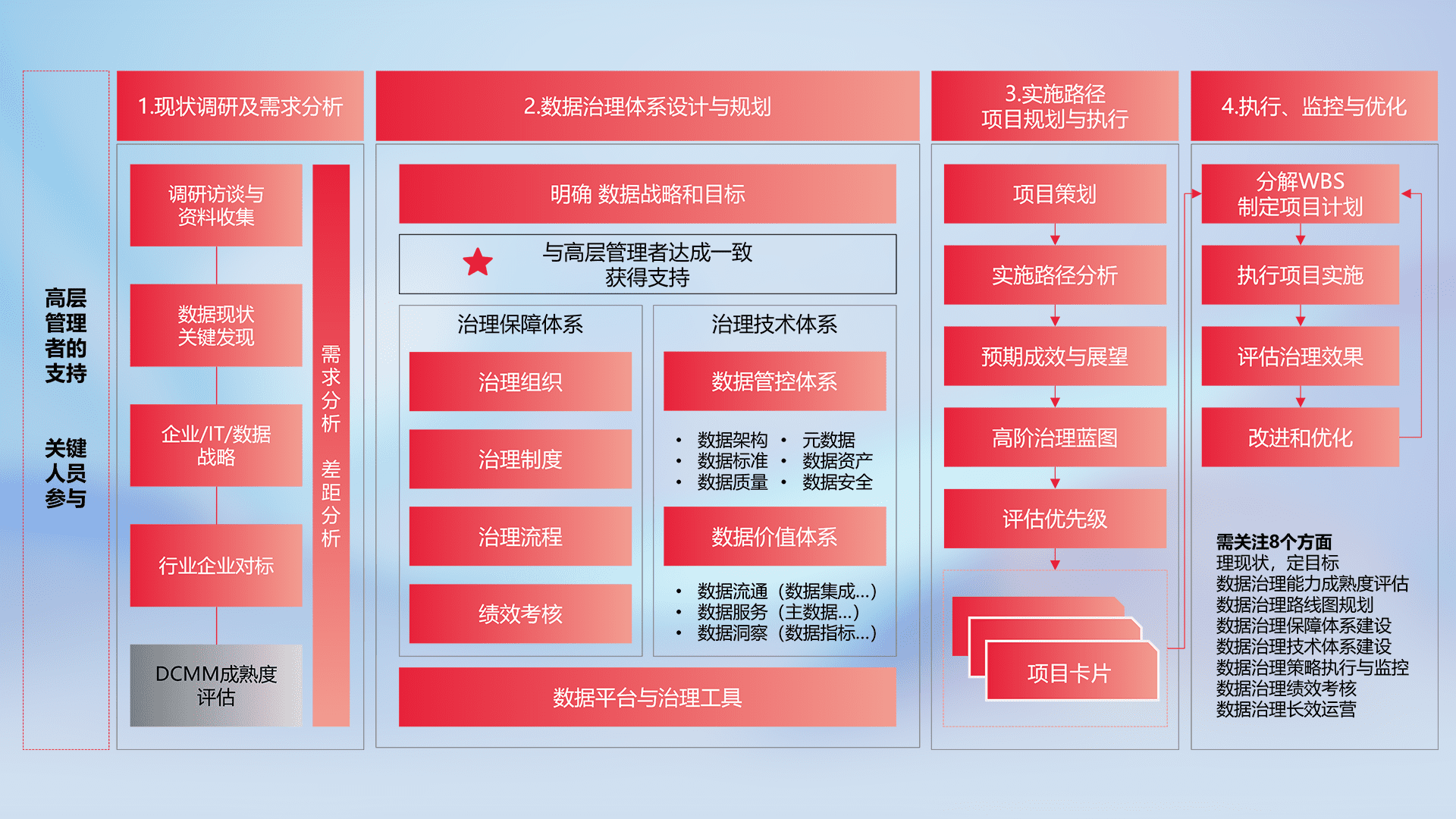 制定并执行统一的数据标准,,规范数据定义和格式,,,,消除冗余和不一致性,,实现跨部门和跨系统的数据一致性,,为企业提供标准化的数据基础。。。。